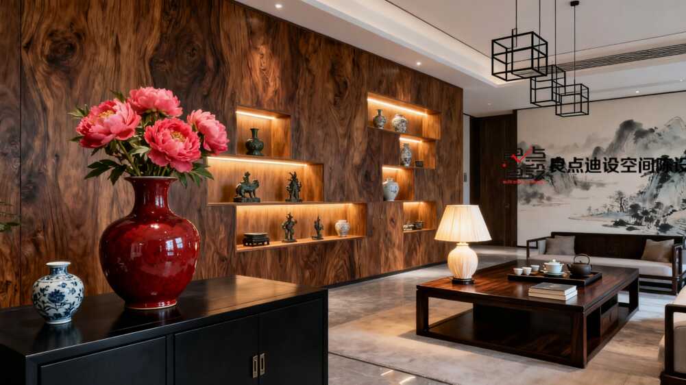 弧形臺+博古架!這間茶館的混搭美學絕了